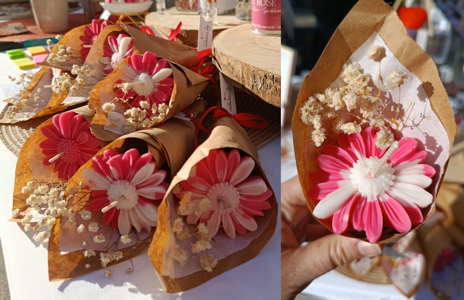“Soy wax flower candles, a delicate and elegant choice for wedding favors, birthdays, and special gifts.”