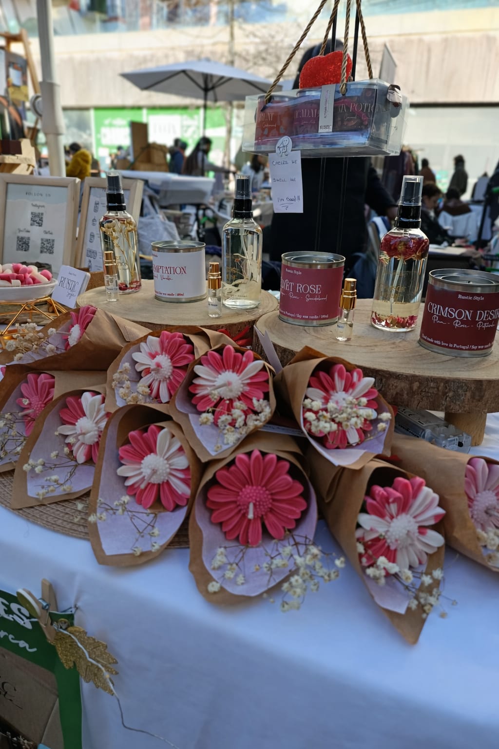 * Handcrafted candles in various formats (amber jars, tins, special editions)